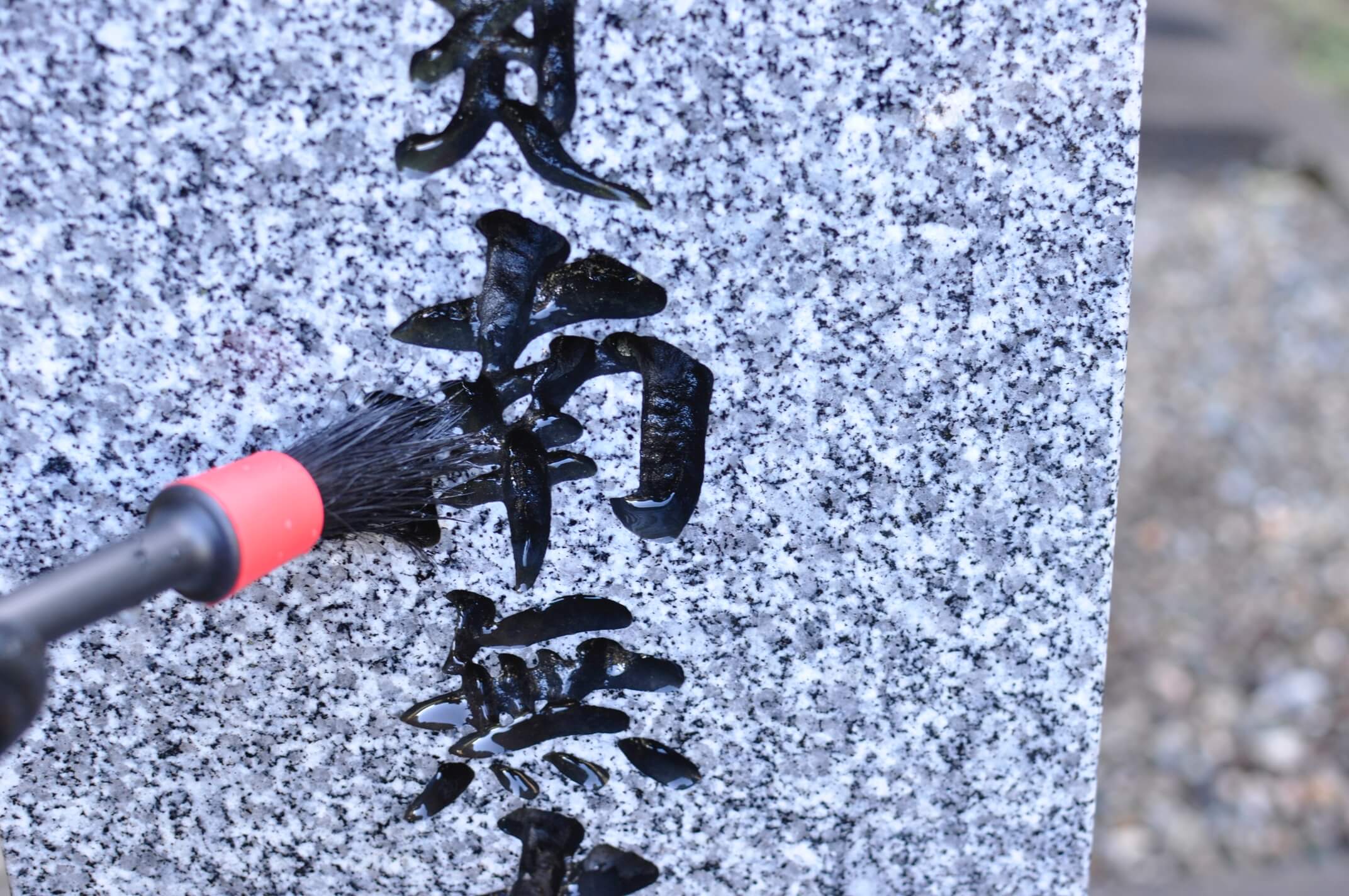 お墓の文字や家紋等は塗装により色が入っているのがほとんどです。しかし経年劣化により、塗装は剥がれ落ちてしまいます。新たに色を入れることで、鮮やかに蘇ります。